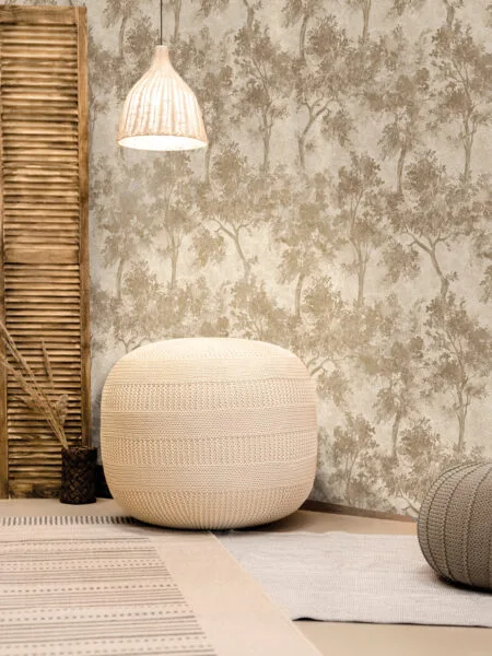 De zachte tinten van dit behang maken het een veelzijdige keuze. De neutrale kleuren passen perfect bij een minimalistisch of natuurlijk interieur.