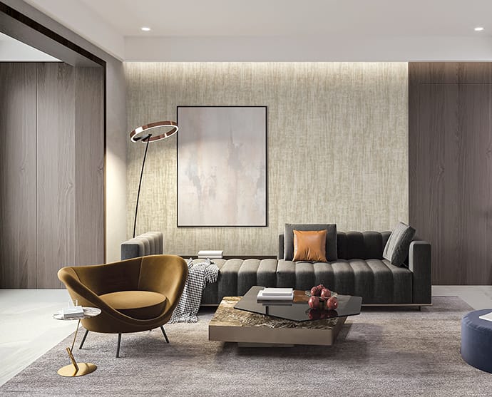 Wat dit behang echt bijzonder maakt, zijn de verfijnde metallic accenten. Deze lichte glans vangt het omgevingslicht en laat de muur gedurende de dag steeds anders ogen. In zacht daglicht straalt het behang rustig en elegant, terwijl het bij kunstlicht een subtiel glinsterend effect krijgt dat extra diepte en karakter toevoegt. Zo creëer je een interieur dat nooit statisch aanvoelt, maar steeds opnieuw tot leven komt.