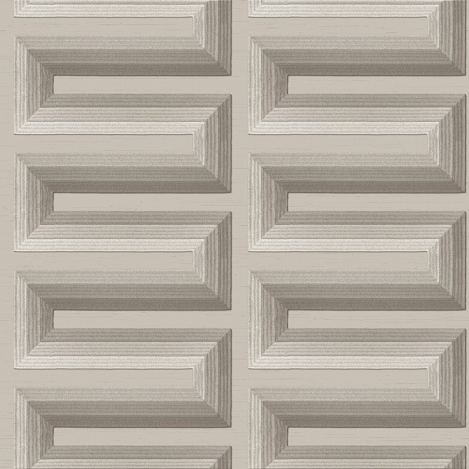 Tegelijkertijd voorkomt de geweven ondergrond dat het ontwerp hard of kil oogt. De subtiele textielstructuur verzacht de lijnen en geeft het oppervlak een warme, luxueuze uitstraling. Hierdoor voelt de muur niet strak en vlak, maar gelaagd en verfijnd, alsof een hoogwaardige stof over de wand is gespannen. Deze combinatie maakt het behang geschikt voor uiteenlopende woonstijlen, van modern en minimalistisch tot hotel chic of eigentijds klassiek.
