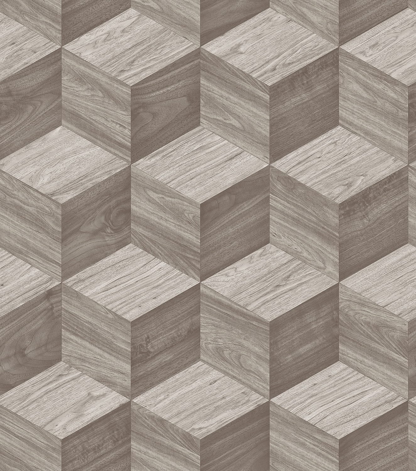 Het dessin geeft de muur een bijna architectonische uitstraling. Door de geometrische opbouw ontstaat een subtiel 3D-effect dat diepte en dynamiek toevoegt aan de ruimte. Tegelijkertijd blijft de natuurlijke houtstructuur zichtbaar, waardoor het behang warmte en karakter behoudt. Zo ontstaat een unieke combinatie van natuur en design: stoer en modern, maar toch sfeervol en uitnodigend.