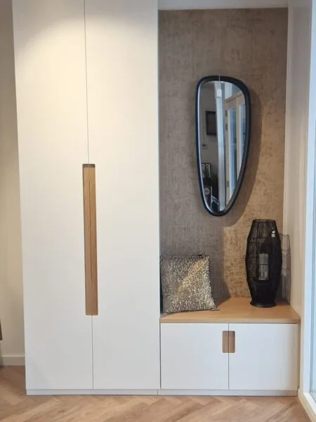 Samen vormen deze twee stoffen een opvallend visueel en tactiel contrast in combinatie met de Mehari collectie, een veganistisch leer met een verfijnde matte uitstraling. Deze combinatie van zachte, glanzende en matte texturen biedt een veelzijdige basis voor interieurontwerp, waarbij elegantie met een modern randje in balans wordt gebracht terwijl de band met natuurlijke schoonheid behouden blijft.