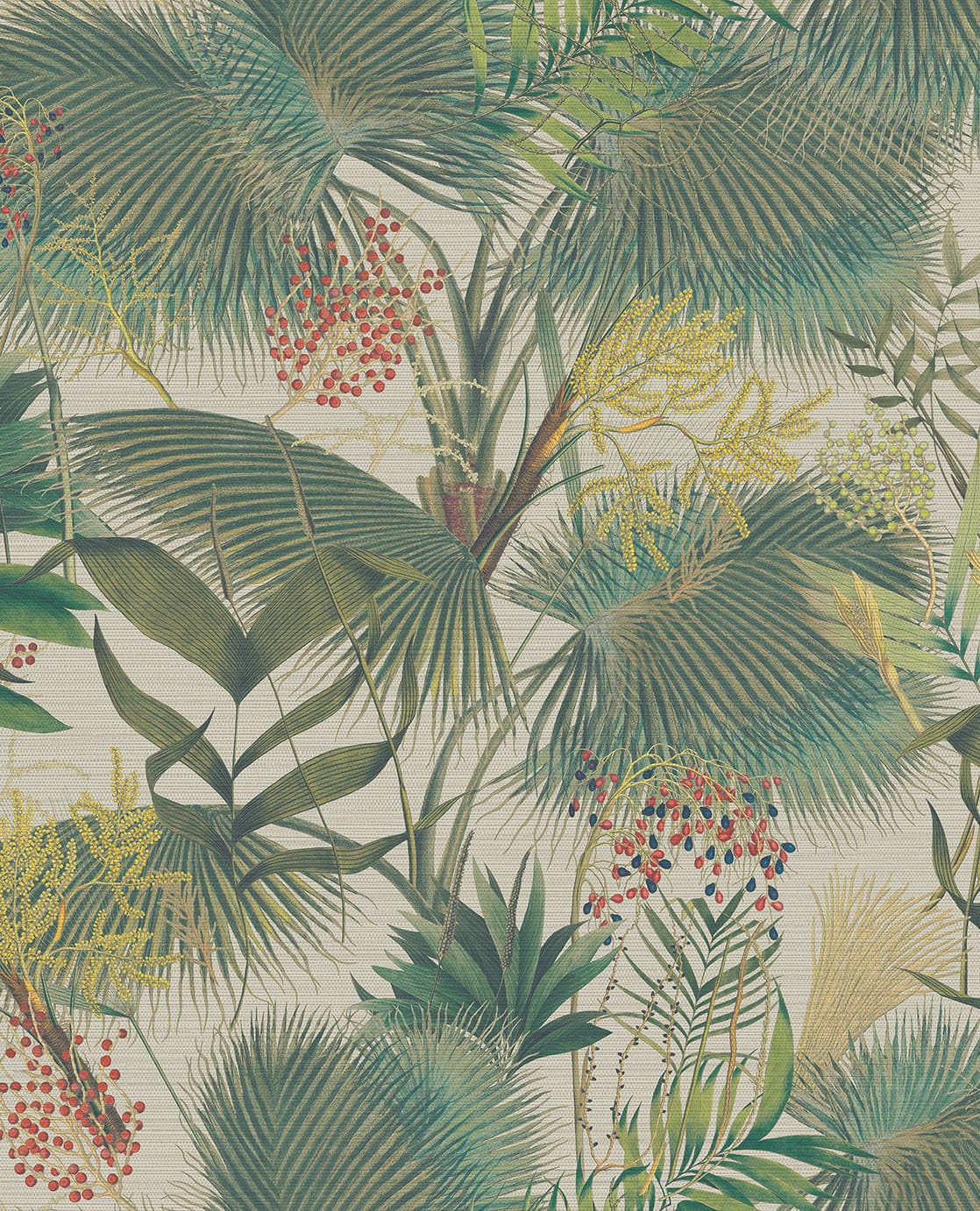 - Uitbundige palmbladmotieven voor een levendige, natuurlijke uitstraling