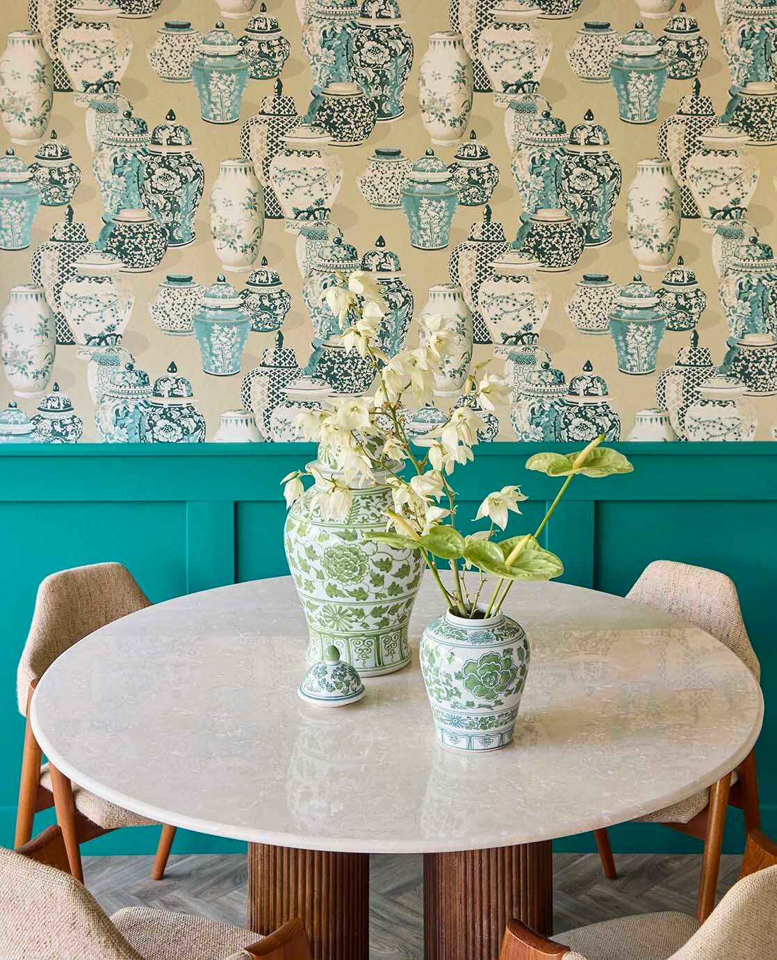 Dankzij de veelzijdigheid van de collectie laat het behang zich gemakkelijk combineren met natuurlijke materialen zoals hout en linnen, maar ook met strakke, moderne meubels. Zo creëer je moeiteloos een balans tussen klassiek en eigentijds.