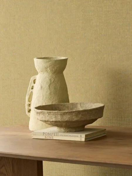 Het kalme kleurenpalet – van koel grijs en warm zand tot natuurlijke aardetinten, saliegroen en zacht mauve – geeft elke ruimte een verfijnde, rustgevende uitstraling.