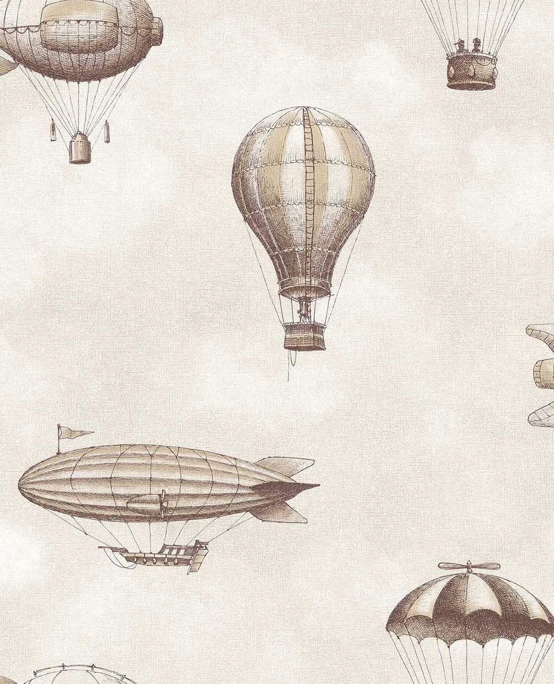 Laat de fantasie opstijgen met dit dromerige kinderbehang vol luchtballonnen en zeppelins. De zachte pastelachtergrond in vier harmonieuze kleuren creëert een rustige en warme sfeer. Het speelse ontwerp nodigt uit tot avontuur en past perfect in een kinderkamer waar dromen, spelen en ontdekken centraal staan.