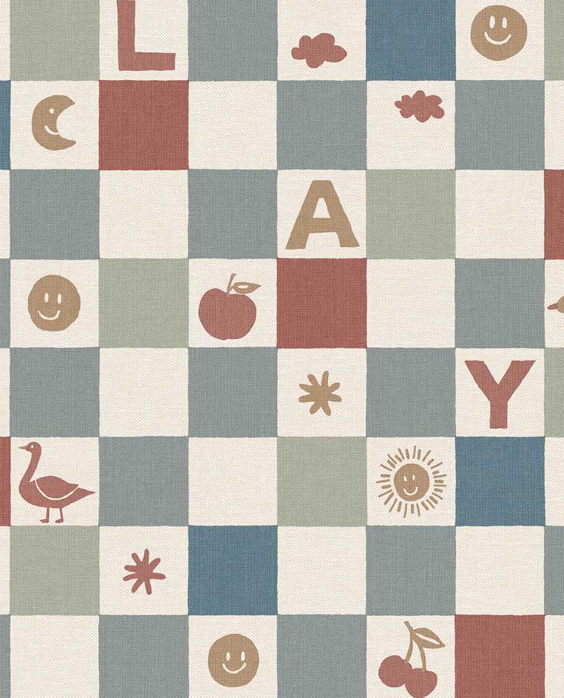 Geef de kinderkamer een speelse en vrolijke uitstraling met dit blokjesbehang. Tussen de gekleurde vakjes verschijnen letters, figuren en kleine illustraties die zorgen voor een levendig geheel. Het ontwerp combineert speelsheid met rust en past perfect in een creatieve, gezellige kinderkamer.