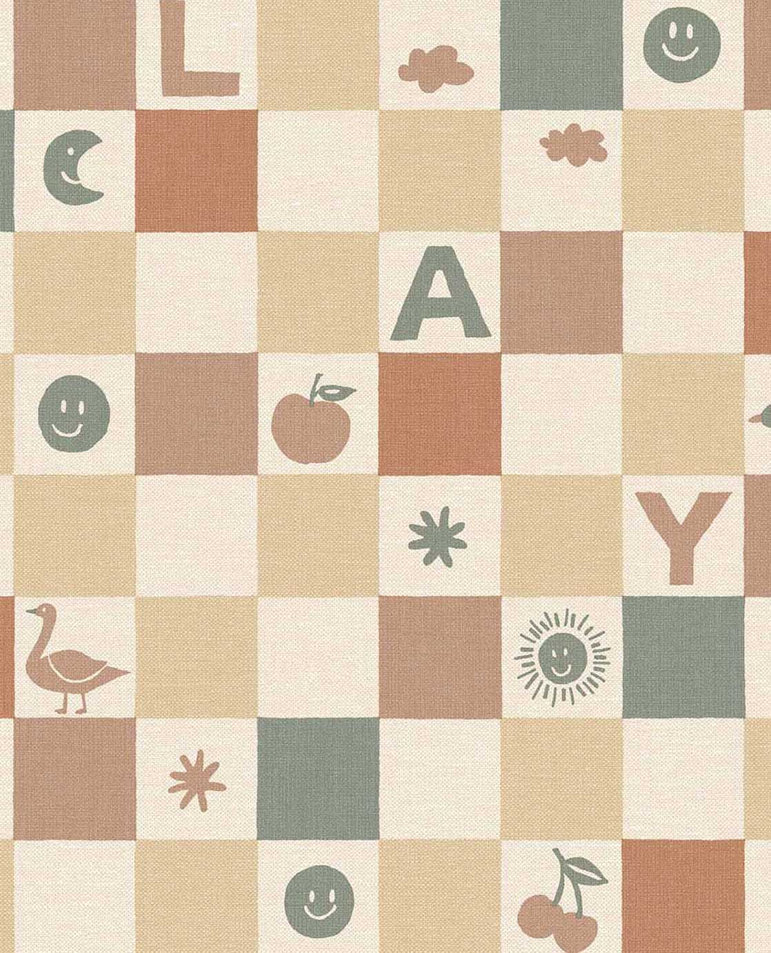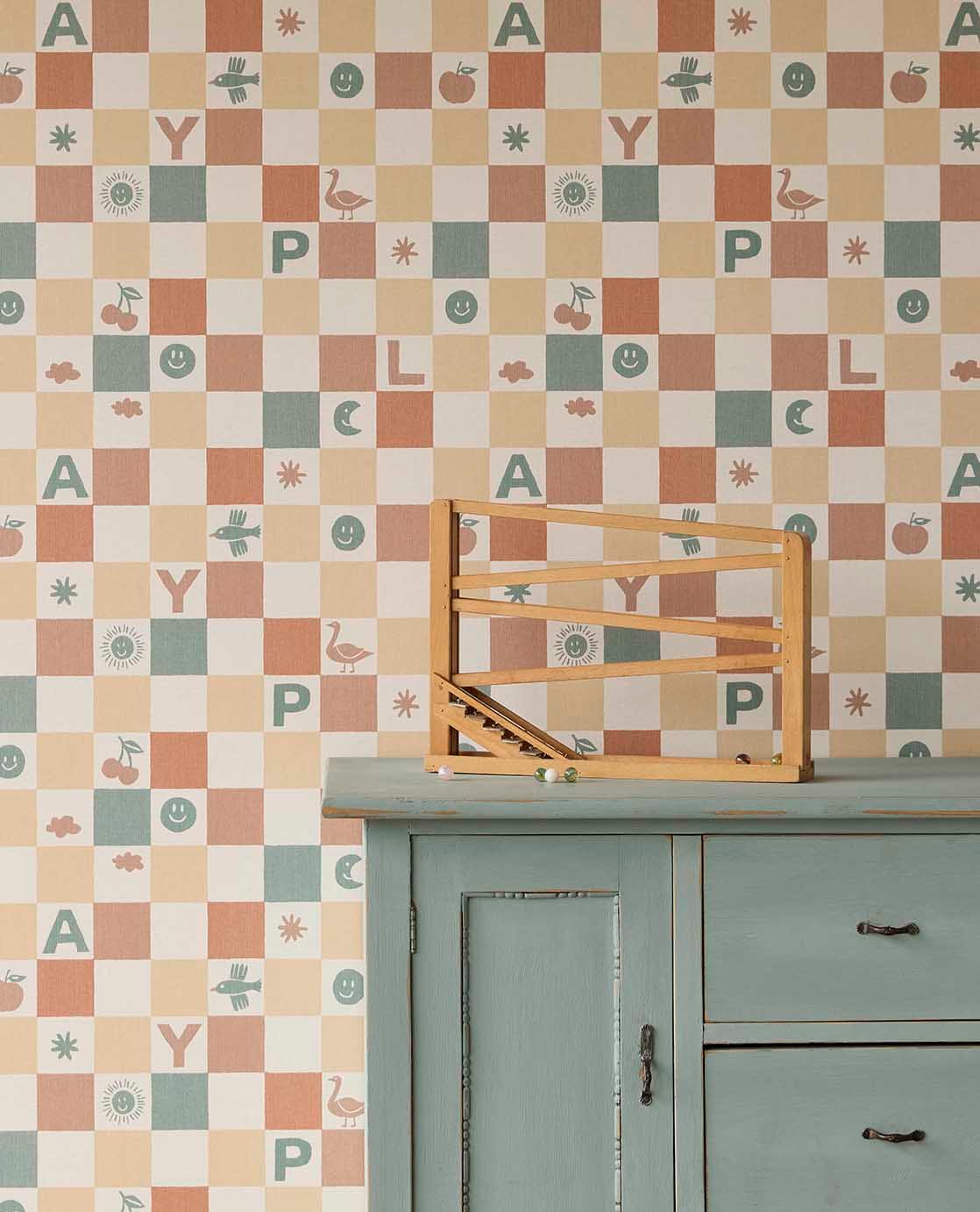 Geef de kinderkamer een speelse en vrolijke uitstraling met dit blokjesbehang. Tussen de gekleurde vakjes verschijnen letters, figuren en kleine illustraties die zorgen voor een levendig geheel. Het ontwerp combineert speelsheid met rust en past perfect in een creatieve, gezellige kinderkamer.