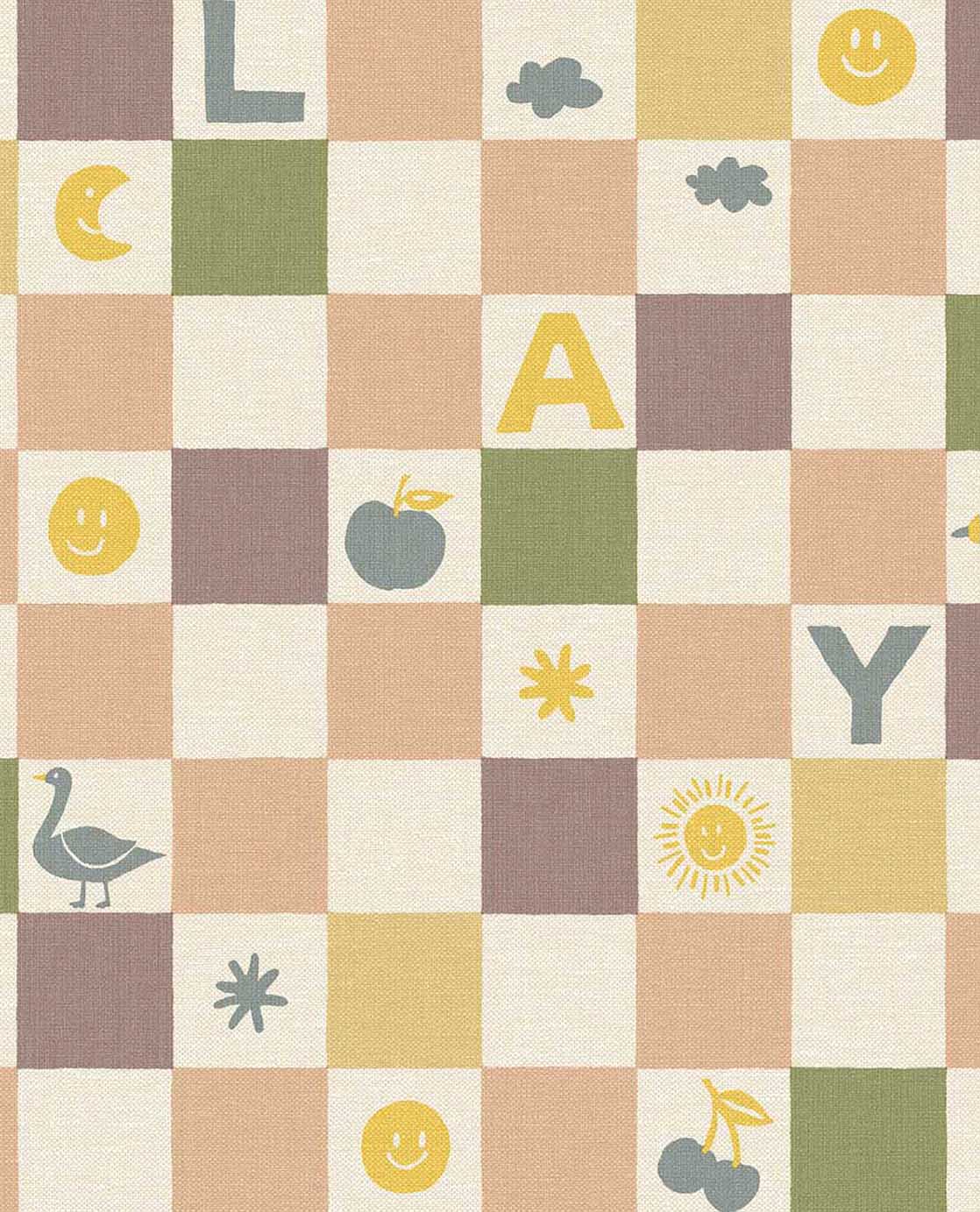 Geef de kinderkamer een speelse en vrolijke uitstraling met dit blokjesbehang. Tussen de gekleurde vakjes verschijnen letters, figuren en kleine illustraties die zorgen voor een levendig geheel. Het ontwerp combineert speelsheid met rust en past perfect in een creatieve, gezellige kinderkamer.