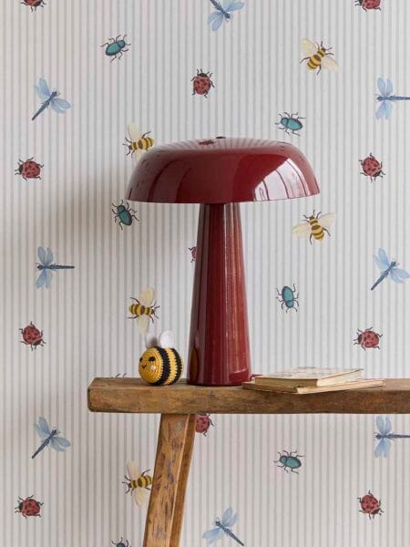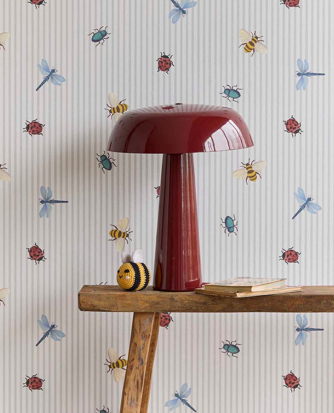 BGeef de kinderkamer een vrolijke en rustige uitstraling met dit behang waarin zachte strepen worden gecombineerd met kleine diertjes. Het patroon brengt speelsheid zonder druk te worden en vormt een fijne basis voor een warme, gezellige kamer. Ideaal voor ruimtes waar spelen, dromen en ontspannen samenkomen.