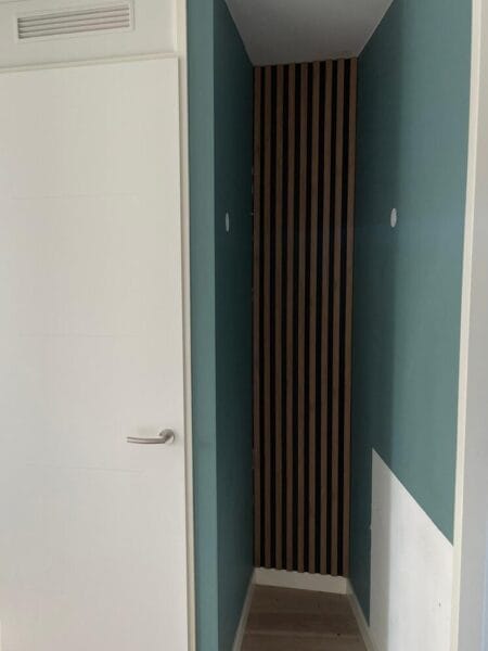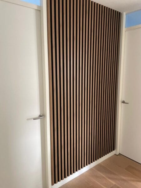 Let op: dit zijn houtlook panelen gemaakt van kunststof en geen hout. De panelen dempen minimaal akoestiek omdat er geen vilt tussen de latten zit bevestigd. Dit zorgt ervoor dat ze ook in vochtige ruimtes geplaatst kunnen worden!