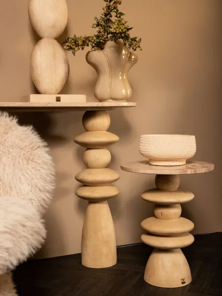 Met een diameter van 45 cm en een hoogte van 50 cm is deze salontafel perfect geschikt voor zowel klassieke als moderne woonkamers. De ronde vorm maakt het geheel vriendelijk en toegankelijk, terwijl het royale oppervlak voldoende ruimte biedt voor decoratie, drankjes of een mooi tafelboek. Combineer deze hoogte met de Callain.