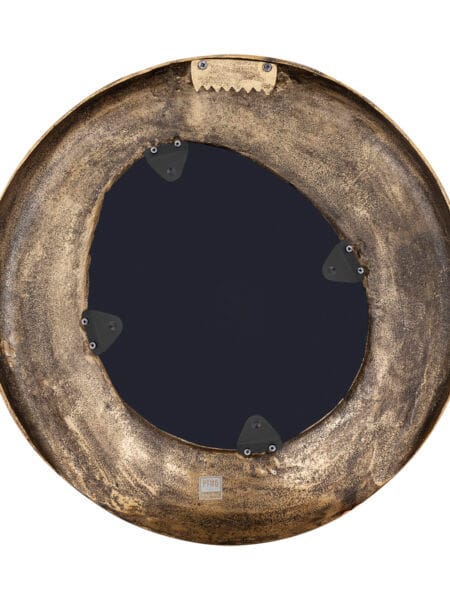 Wat deze spiegel direct bijzonder maakt, is het organisch gevormde, open ronde frame. Het robuuste frame heeft een subtiele structuur en een luxe afwerking die verkrijgbaar is in goud en zilver. De goudkleurige variant zorgt voor een warme, chique uitstraling, terwijl de zilverkleurige uitvoering een modern en elegant accent geeft aan de ruimte. Door de licht gemêleerde structuur in het metaal krijgt de spiegel een unieke en karaktervolle look.