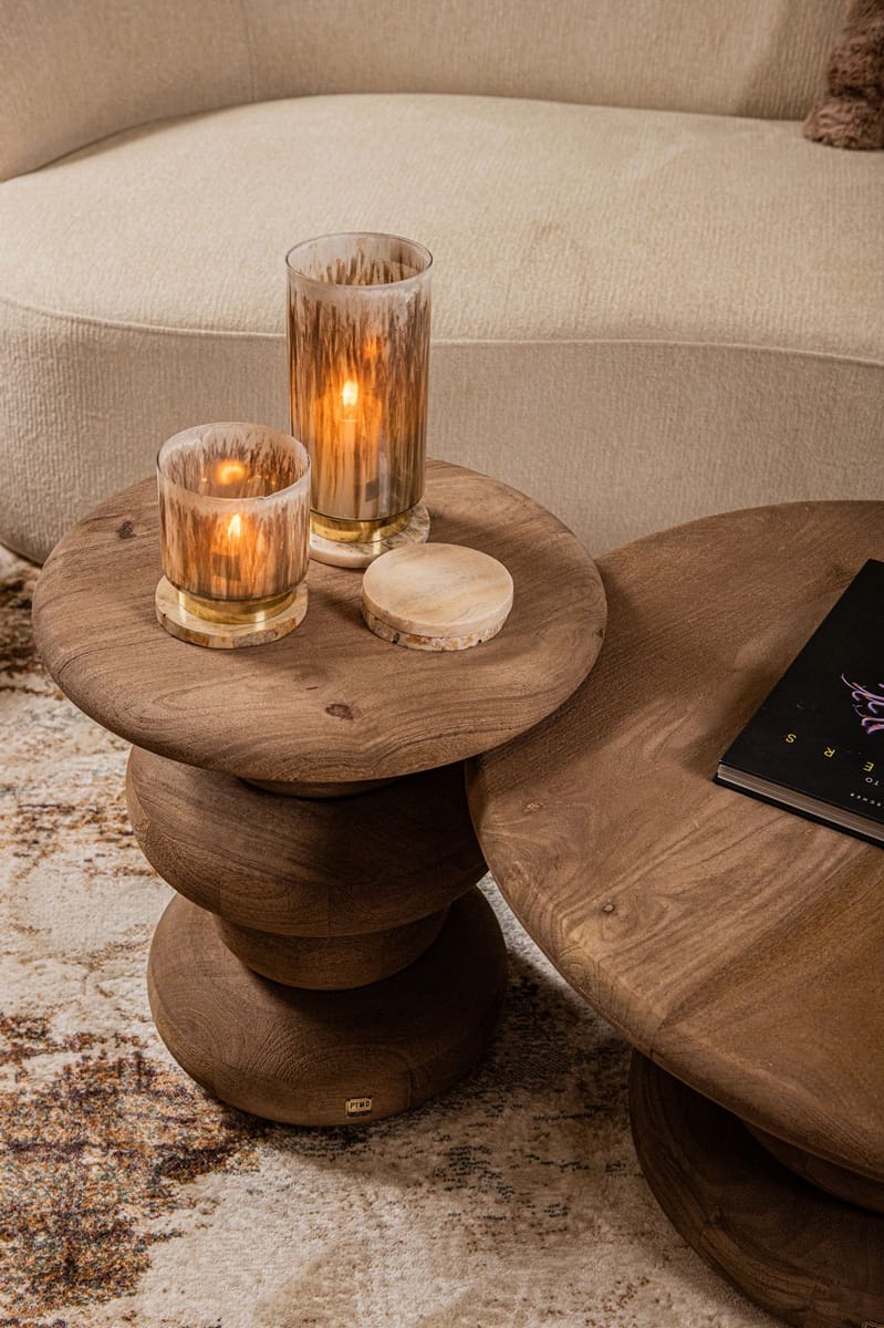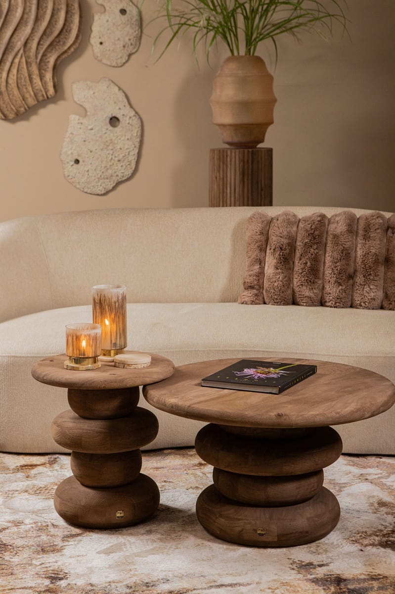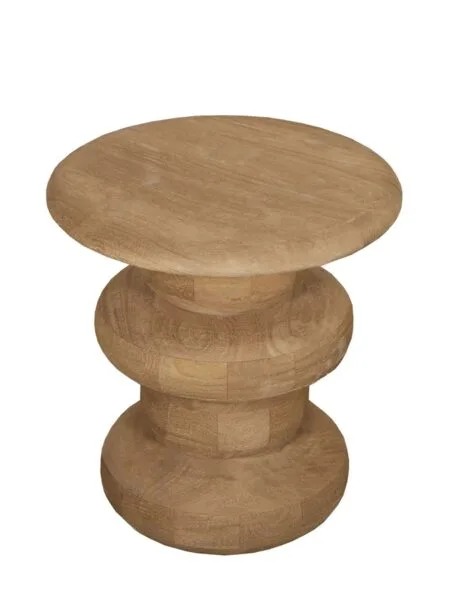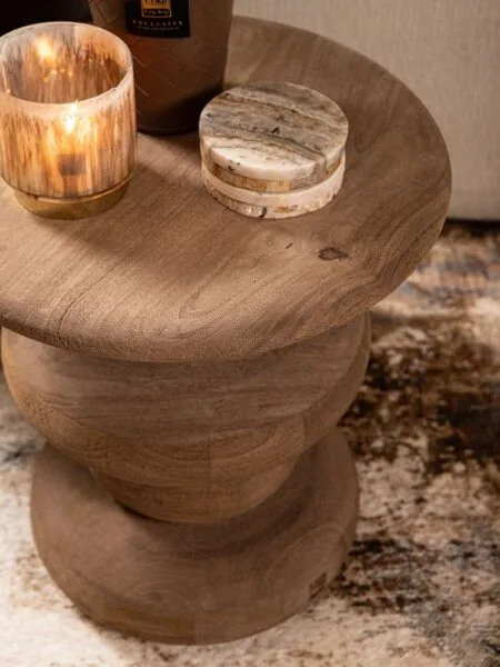 De PTMD Keven Natural Mango Wood Ribbed Side Table combineert een compact formaat met een opvallend design. De ronde vormen en de ribbelstructuur van de voet geven deze tafel een unieke uitstraling.
