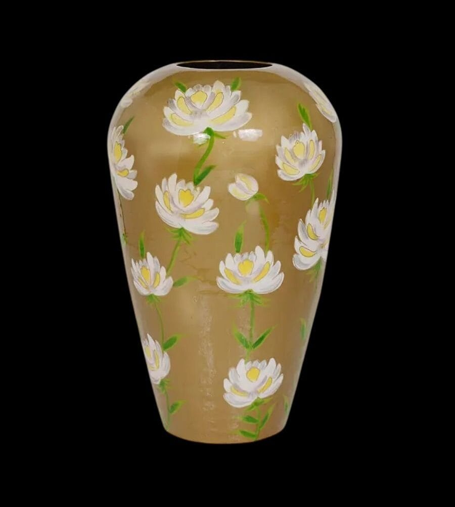 Vaas handgeschilderd goud witte bloemen 43x43x68cm
