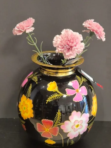 Vaas handgeschilderd zwart bloemen 24x24x26 cm