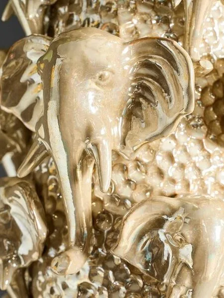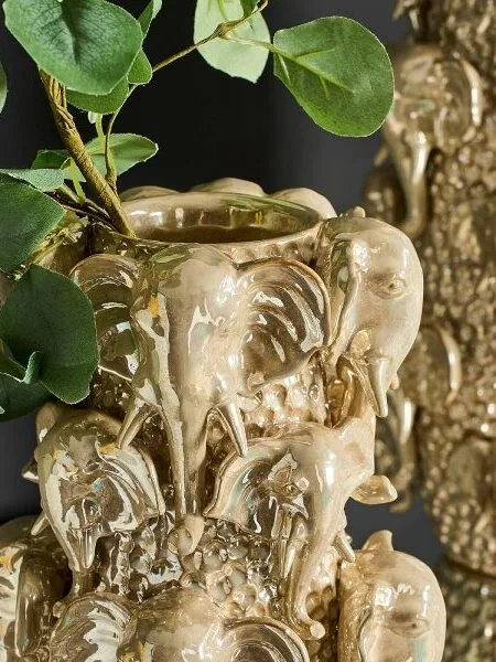 Vaas met olifanten 24x24x49 cm – luxe gouden eyecatcher van fijn aardewerk