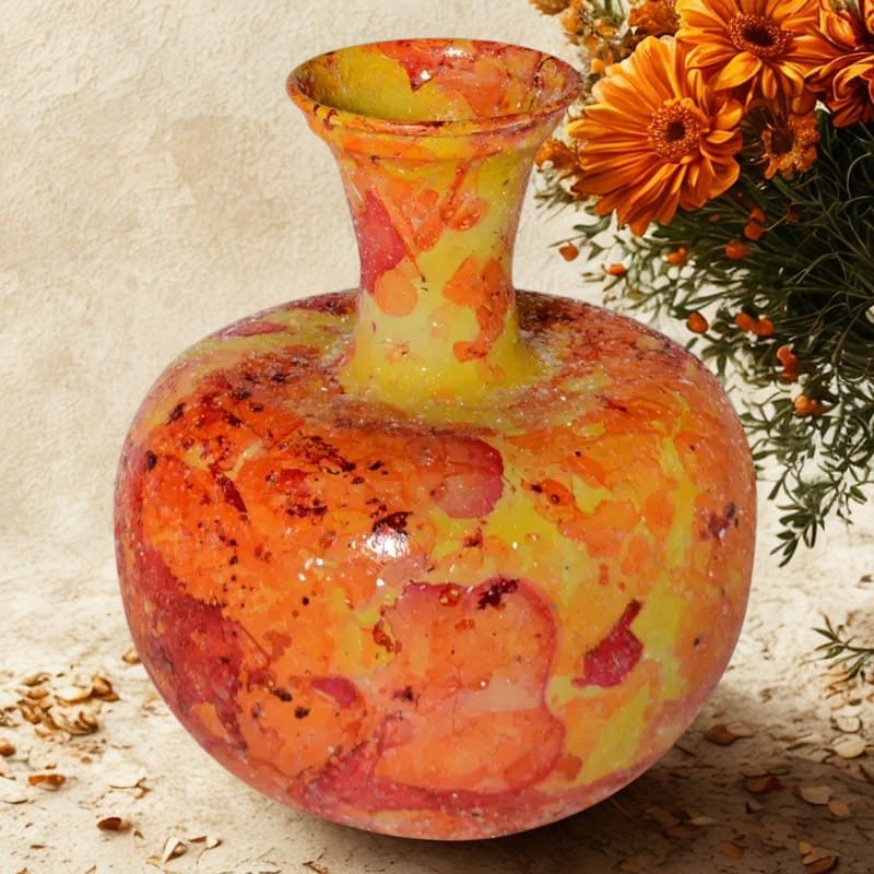 De Vaas mosaic geel rood is een perfecte keuze voor liefhebbers van unieke, handgemaakte interieuraccessoires met karakter. Dankzij de verfijnde afwerking en het kleurrijke ontwerp voegt deze vaas niet alleen sfeer toe, maar vertelt ze ook een verhaal van vakmanschap en stijl. Een absolute must-have voor wie houdt van luxe, originaliteit en artistieke klasse in het interieur.