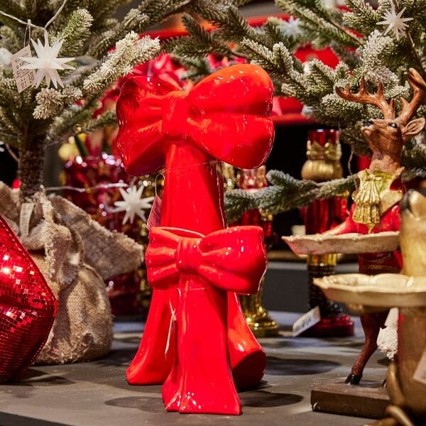 Vaas rode strik 23x13x37 cm – stijlvolle kerstdecoratie van Dolomiet steen