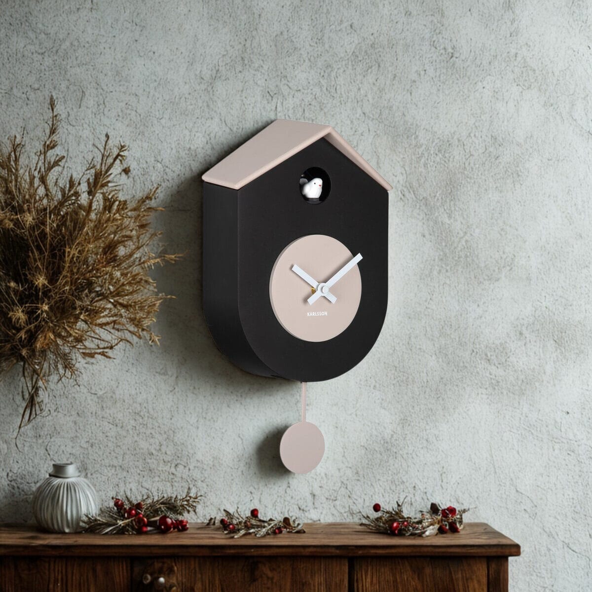 De Grato Koekoek Wandklok van Karlsson is een verrassende en eigentijdse herinterpretatie van de klassieke koekoeksklok. Waar traditionele koekoeksklokken vaak een nostalgisch karakter hebben, geeft de Grato klok daar een stijlvolle en moderne draai aan. Met zijn strakke lijnen, minimalistisch design en tone-on-tone afwerking in zwart, is deze klok perfect voor elk interieur dat houdt van een subtiele blikvanger met karakter.