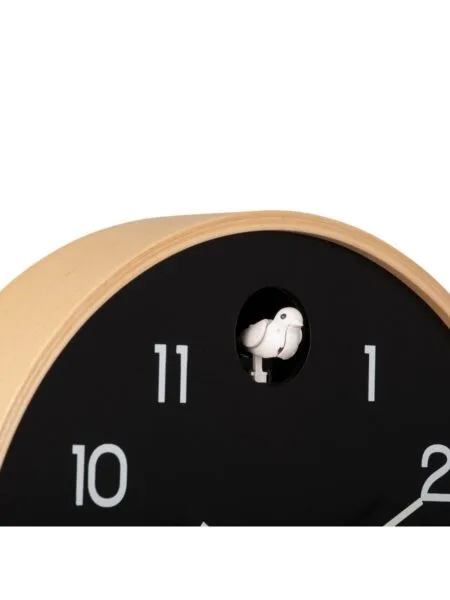 Wat deze wandklok echt bijzonder maakt, is natuurlijk het subtiele koekoekje dat elk uur op charmante wijze van zich laat horen. In tegenstelling tot de vaak drukke, traditionele koekoeksklokken, kiest dit ontwerp voor een moderne en verfijnde uitvoering. De vriendelijke koekoeksroep zorgt voor een speels accent, zonder storend te zijn. Hierdoor is de klok perfect voor elke ruimte – of het nu de keuken, woonkamer, slaapkamer of studeerkamer is.